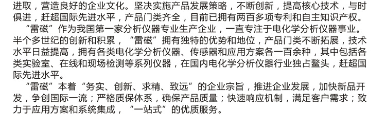 217:第二節(jié)鹽橋的補充液可根據(jù)用戶需求自行選擇。如測量樣品中較低氯離子濃度時,可以在第二節(jié)鹽橋內(nèi)填充硝酸鉀溶液,以防止**節(jié)鹽橋的氯化鉀直接滲透到樣品中,影響氯離子的測量結(jié)果。