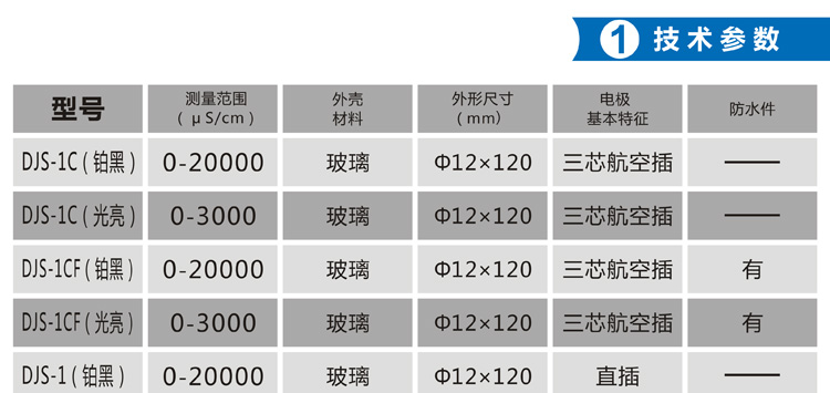 上海雷磁DJS-1CF(光亮/鉑黑)電導(dǎo)電極(三芯航空插/防水)產(chǎn)品介紹