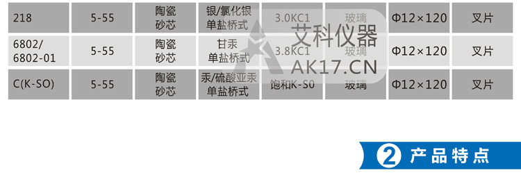 C(K2SO4)參比電極:常用的一種參比電極,其參比溶液中不含氯離子,適合非氯離子場合使用。